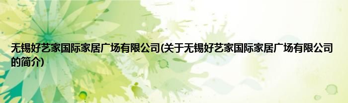 无锡好艺家国际家居广场有限公司(关于无锡好艺家国际家居广场有限公司的简介)