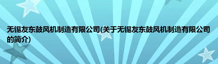 本文关于无锡友东鼓风机制造有限公司的简介就讲解完毕,希望对大家有所帮助。