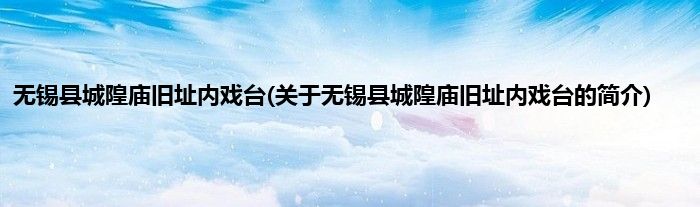 本文关于无锡县城隍庙旧址内戏台的简介就讲解完毕,希望对大家有所帮助。
