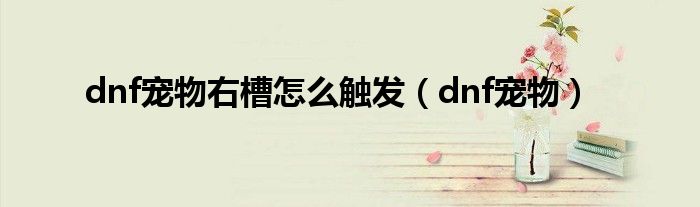 大家好,精选小编来为大家解答以上问题。dnf宠物右槽怎么触发,dnf宠物很多人还不知道,现在让我们一起来看看吧!