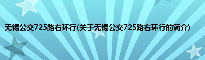 本文关于无锡公交725路右环行的简介就讲解完毕,希望对大家有所帮助。