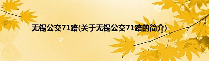 本文关于无锡公交71路的简介就讲解完毕,希望对大家有所帮助。