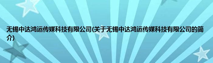 本文关于无锡中达鸿运传媒科技有限公司的简介就讲解完毕,希望对大家有所帮助。