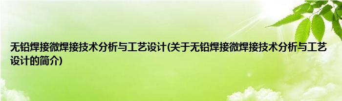 本文关于无铅焊接微焊接技术分析与工艺设计的简介就讲解完毕,希望对大家有所帮助。