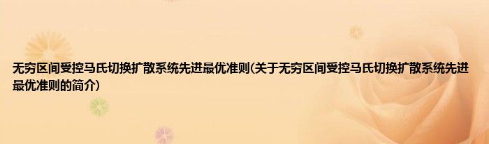 无穷区间受控马氏切换扩散系统先进最优准则(关于无穷区间受控马氏切换扩散系统先进最...