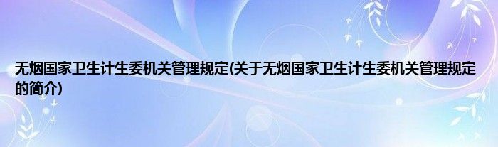 无烟国家卫生计生委机关管理规定(关于无烟国家卫生计生委机关管理规定的简介)