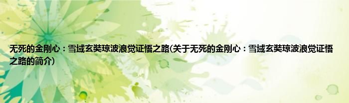 本文关于无死的金刚心 : 雪域玄奘琼波浪觉证悟之路的简介就讲解完毕,希望对大家有所帮助。