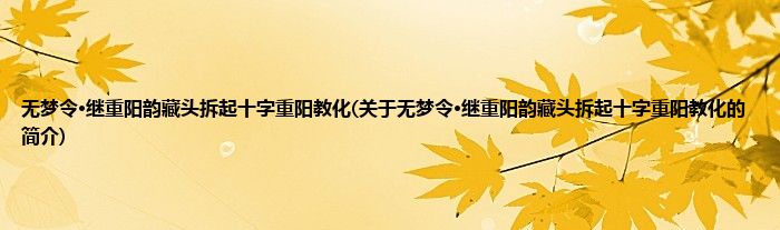 本文关于无梦令·继重阳韵藏头拆起十字重阳教化的简介就讲解完毕,希望对大家有所帮助。