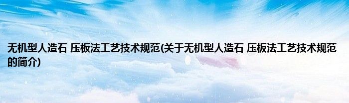 本文关于无机型人造石 压板法工艺技术规范的简介就讲解完毕,希望对大家有所帮助。