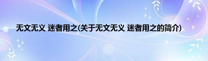 大家好,无文无义,迷者用之,关于无文无义,迷者用之的简介很多人还不知道,现在让我们一起来看看吧!
