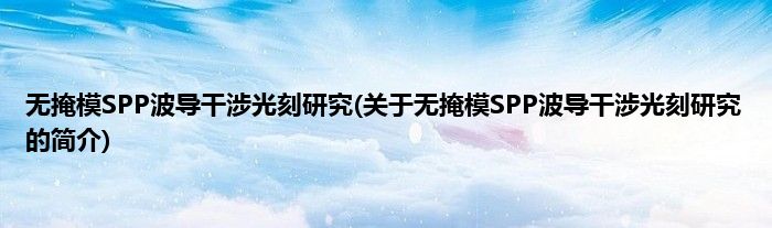 本文关于无掩模SPP波导干涉光刻研究的简介就讲解完毕,希望对大家有所帮助。