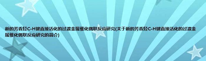 本文关于新的芳香烃C-H键直接活化的过渡金属催化偶联反应研究的简介就讲解完毕,希望对大家有所帮助。