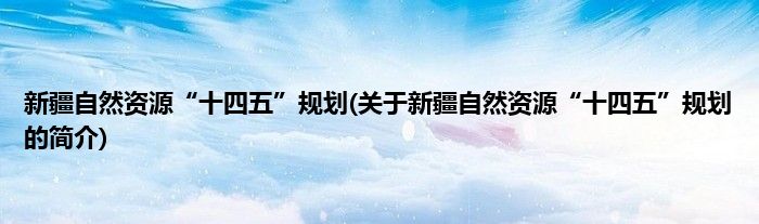 新疆自然资源“十四五”规划(关于新疆自然资源“十四五”规划的简介)