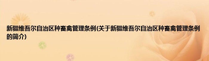 大家好,新疆维吾尔自治区种畜禽管理条例,关于新疆维吾尔自治区种畜禽管理条例的简介很多人还不知道,现在让我们一起来看看吧!
