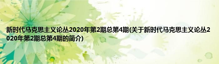 大家好,新时代马克思主义论丛2020年第2期总第4期,关于新时代马克思主义论丛2020年第2期总第4期的简介很多人还不知道,现在让我们一起来看看吧!