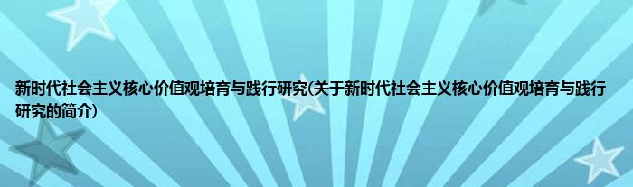大家好,新时代社会主义核心价值观培育与践行研究,关于新时代社会主义核心价值观培育与践行研究的简介很多人还不知道,现在让我们一起来看看吧!