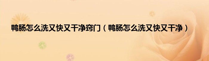 大家好,小科来为大家解答以上问题。鸭肠怎么洗又快又干净窍门,鸭肠怎么洗又快又干净很多人还不知道,现在让我们一起来看看吧!