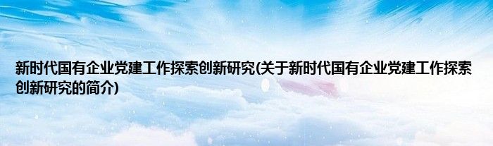 大家好,新时代国有企业党建工作探索创新研究,关于新时代国有企业党建工作探索创新研究的简介很多人还不知道,现在让我们一起来看看吧!