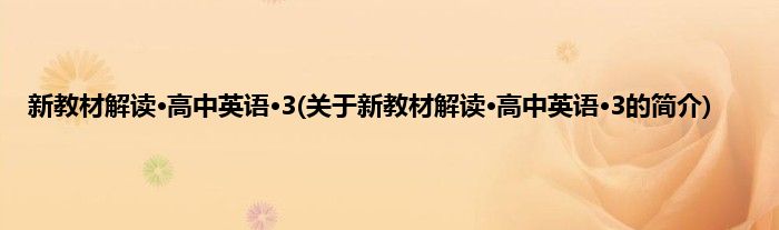 本文关于新教材解读·高中英语·3的简介就讲解完毕,希望对大家有所帮助。