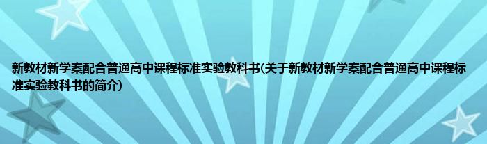 本文关于新教材新学案配合普通高中课程标准实验教科书的简介就讲解完毕,希望对大家有所帮助。