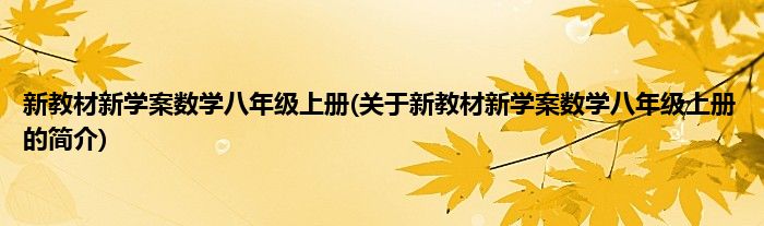 本文关于新教材新学案数学八年级上册的简介就讲解完毕,希望对大家有所帮助。