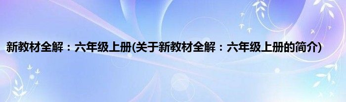 本文关于新教材全解:六年级上册的简介就讲解完毕,希望对大家有所帮助。
