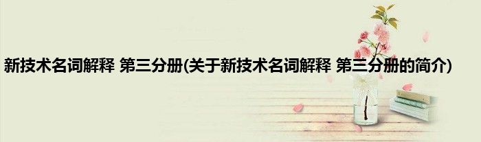 本文关于新技术名词解释 第三分册的简介就讲解完毕,希望对大家有所帮助。