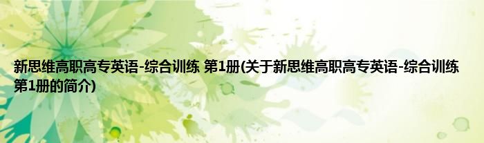 本文关于新思维高职高专英语-综合训练 第1册的简介就讲解完毕,希望对大家有所帮助。
