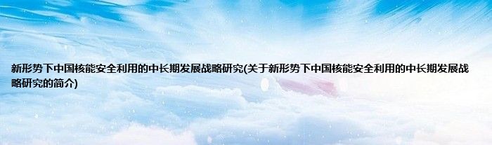 新形势下中国核能安全利用的中长期发展战略研究(关于新形势下中国核能安全利用的中长期发展战略研究的简介)