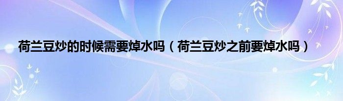 大家好,小科来为大家解答以上问题。荷兰豆炒的时候需要焯水吗,荷兰豆炒之前要焯水吗很多人还不知道,现在让我们一起来看看吧!