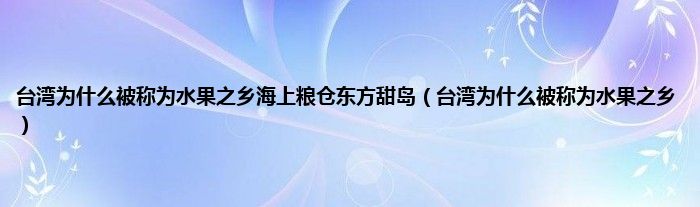 大家好,小科来为大家解答以上问题。台湾为什么被称为水果之乡海上粮仓东方甜岛,台湾为什么被称为水果之乡很多人还不知道,现在让我们一起来看看吧!