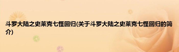 本文关于斗罗大陆之史莱克七怪回归的简介就讲解完毕,希望对大家有所帮助。