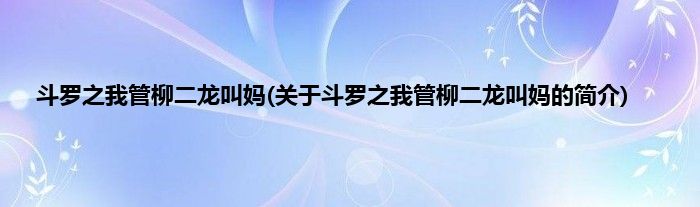 本文关于斗罗之我管柳二龙叫妈的简介就讲解完毕,希望对大家有所帮助。