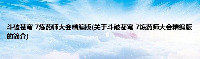 大家好,斗破苍穹 7炼药师大会精编版,关于斗破苍穹 7炼药师大会精编版的简介很多人还不知道,现在让我们一起来看看吧!