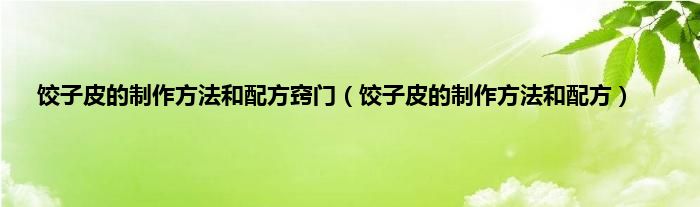 大家好,小常来为大家解答以上问题。饺子皮的制作方法和配方窍门,饺子皮的制作方法和配方很多人还不知道,现在让我们一起来看看吧!