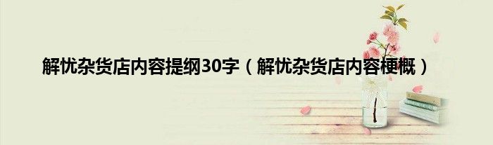 大家好,小常来为大家解答以上问题。解忧杂货店内容提纲30字,解忧杂货店内容梗概很多人还不知道,现在让我们一起来看看吧!