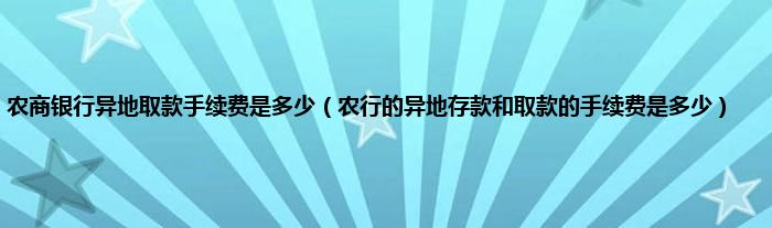 大家好,小常来为大家解答以上问题。农商银行异地取款手续费是多少,农行的异地存款和取款的手续费是多少很多人还不知道,现在让我们一起来看看吧!