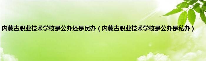 大家好,小常来为大家解答以上问题。内蒙古职业技术学校是公办还是民办,内蒙古职业技术学校是公办是私办很多人还不知道,现在让我们一起来看看吧!