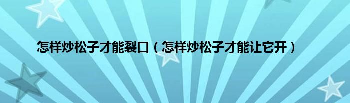 大家好,小科来为大家解答以上问题。怎样炒松子才能裂口,怎样炒松子才能让它开很多人还不知道,现在让我们一起来看看吧!