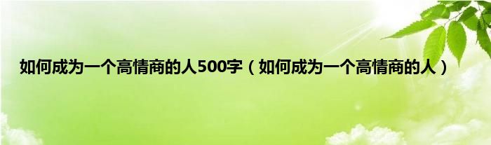 大家好,小常来为大家解答以上问题。如何成为一个高情商的人500字,如何成为一个高情商的人很多人还不知道,现在让我们一起来看看吧!