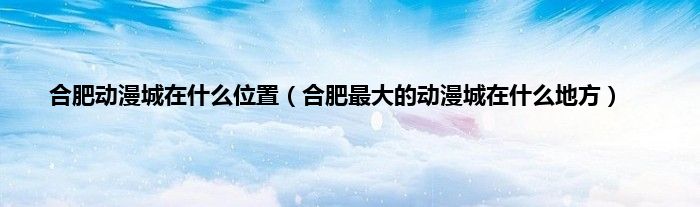 大家好,小常来为大家解答以上问题。合肥动漫城在什么位置,合肥最大的动漫城在什么地方很多人还不知道,现在让我们一起来看看吧!