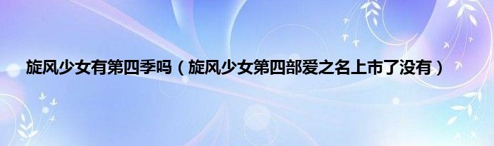 大家好,小常来为大家解答以上问题。旋风少女有第四季吗,旋风少女第四部爱之名上市了没有很多人还不知道,现在让我们一起来看看吧!