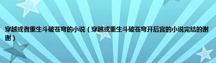 大家好,小常来为大家解答以上问题。穿越或者重生斗破苍穹的小说,穿越或重生斗破苍穹开后宫的小说完结的谢谢很多人还不知道,现在让我们一起来看看吧!