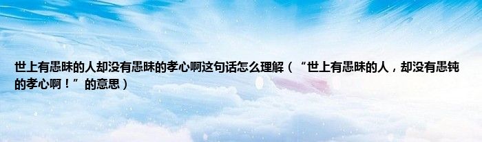 大家好,小常来为大家解答以上问题。世上有愚昧的人却没有愚昧的孝心啊这句话怎么理解,“世上有愚昧的人,却没有愚钝的孝心啊!”的意思很多人还不知道,现在让我们一起来看看吧!