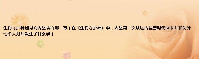 大家好,小常来为大家解答以上问题。生肖守护神如月向齐岳表白哪一章,在《生肖守护神》中,齐岳第一次从远古巨兽时代回来并和另外七个人打后发生了什么事很多人还不知道,现在让我们一起来看看吧!