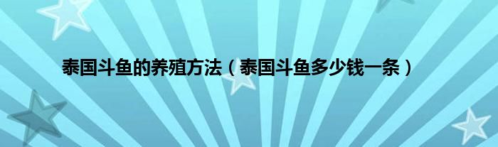 泰国斗鱼的养殖方法(泰国斗鱼多少钱一条)