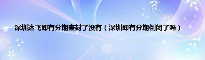 深圳达飞即有分期查封了没有(深圳即有分期倒闭了吗)