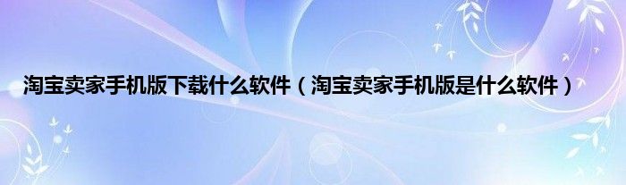 淘宝卖家手机版下载什么软件(淘宝卖家手机版是什么软件)
