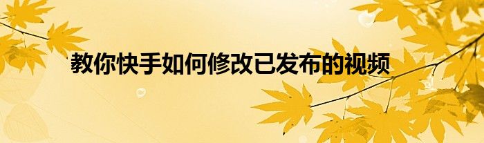 现在大家使用手机的频率越来越频繁,手机也为我们提供了许多的便利,今天小编也来说一下这个教你快手如何修改已发布的视频相关的文章,这个操作其实不复杂,接下来就给大家介绍一下教你快手如何修改已发布的视频,一起来看看吧: