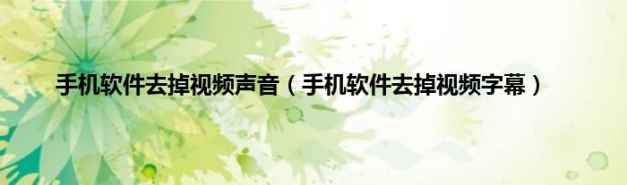 手机软件去掉视频声音(手机软件去掉视频字幕)